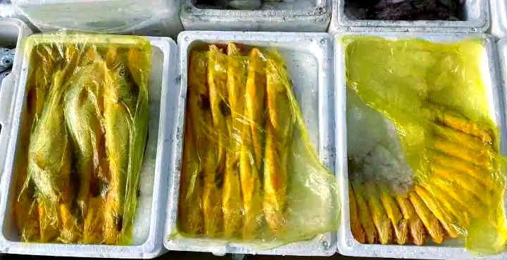此外,还有那令人瞩目的舟山钓带,堪称带鱼中的极品。每一条都油光闪闪,鲜嫩多汁,宛如一把闪亮的大宝剑,令人心动不已。