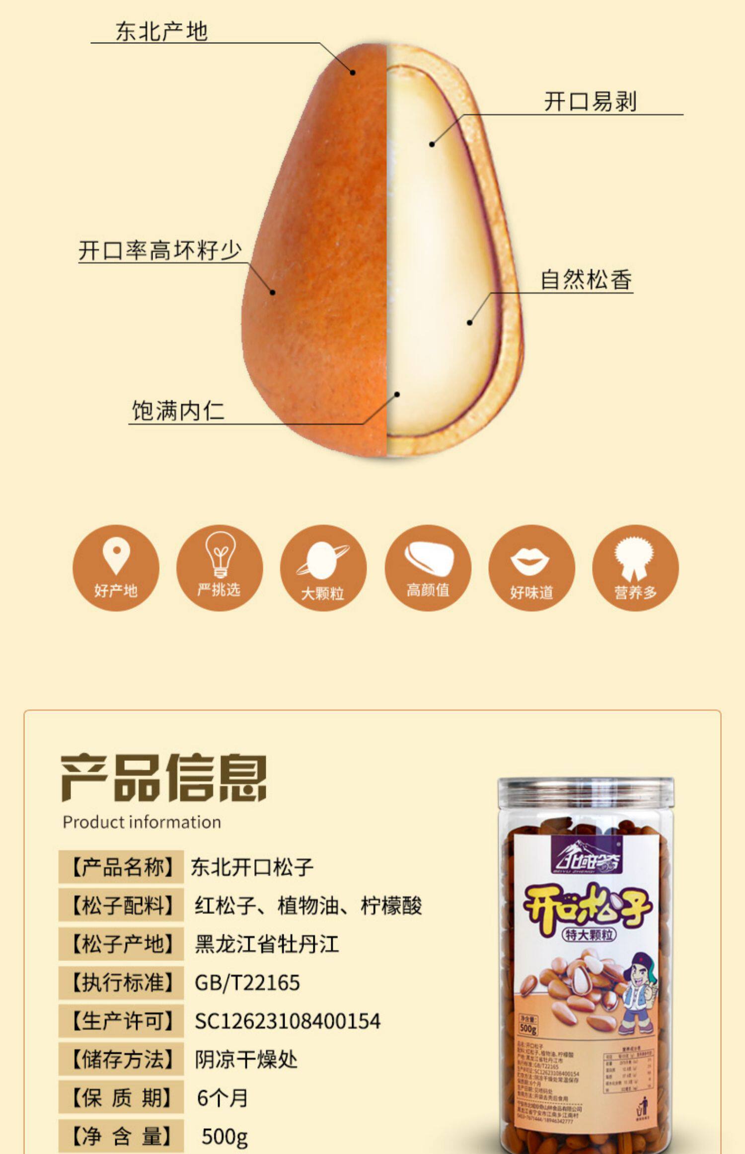 松子特级特大东北开口松籽散装大颗粒500g原味红松子孕妇罐装新货
