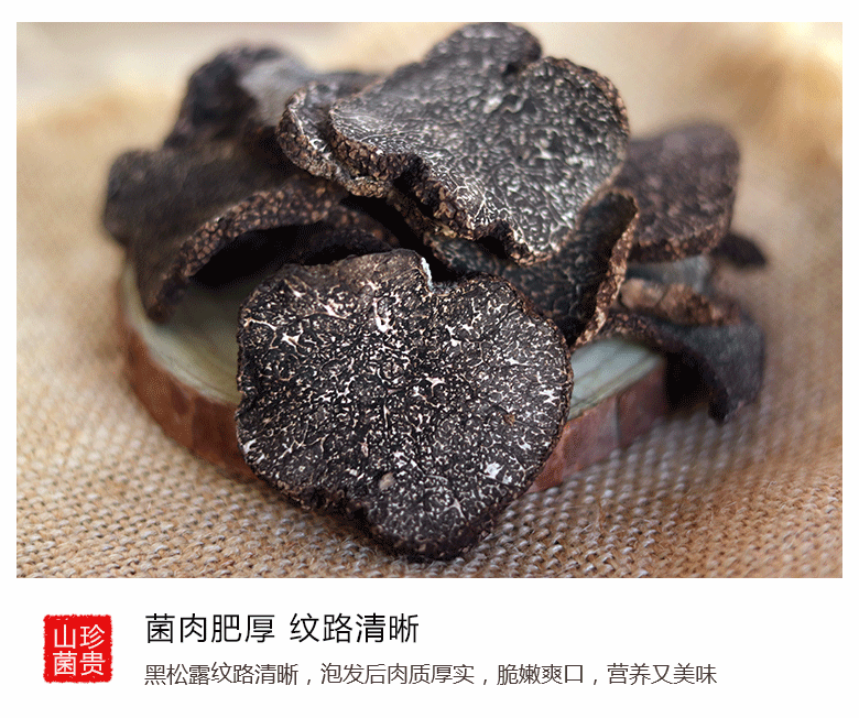 云南高原特产野生黑松露干片野生菌菇黑松茸猪拱菌出口级黑松露250g